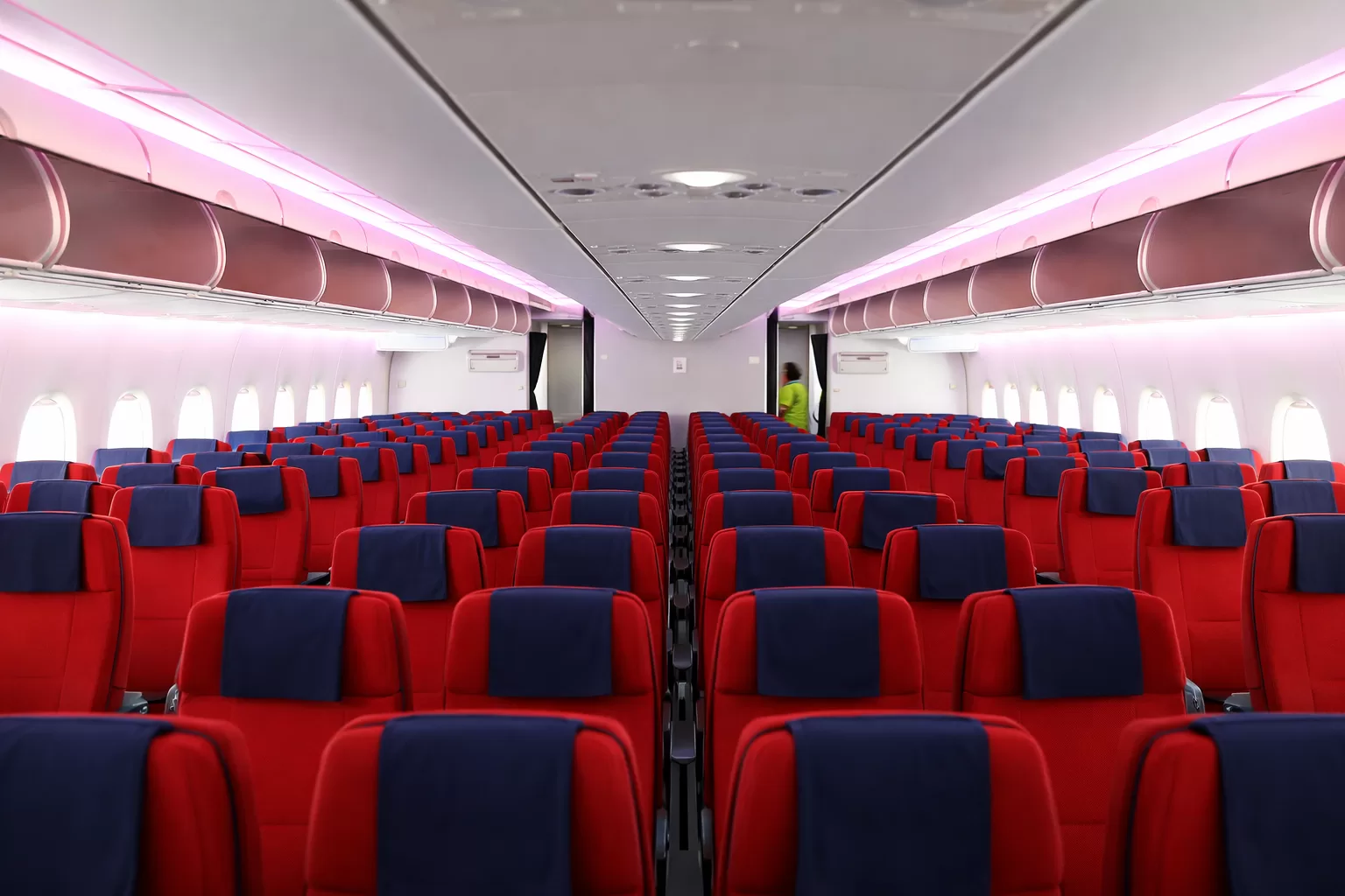 A largura interna do A350, por exemplo, é de quase 6 metros. A do A320 é de pouco mais de 3,7 metros. Essa diferença de geometria muda completamente a sensação a bordo.
