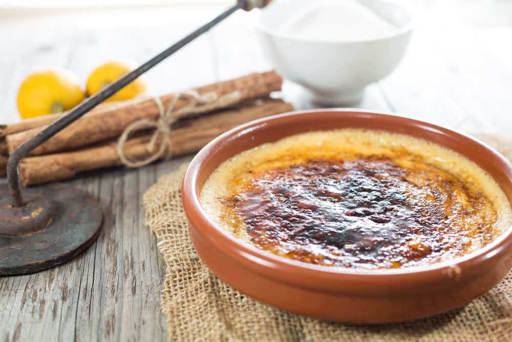 Crema catalana — A prima da crème brûlée francesa. Creme de ovo com canela e casca de limão, com uma crosta de açúcar queimado por cima. É a sobremesa mais típica da Catalunha.