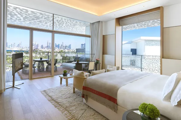 Construído em uma ilha artificial em forma de cavalo-marinho, o Bulgari Resort Dubai é uma verdadeira joia da hotelaria. O hotel combina o design italiano com o luxo árabe, criando uma atmosfera elegante e acolhedora.