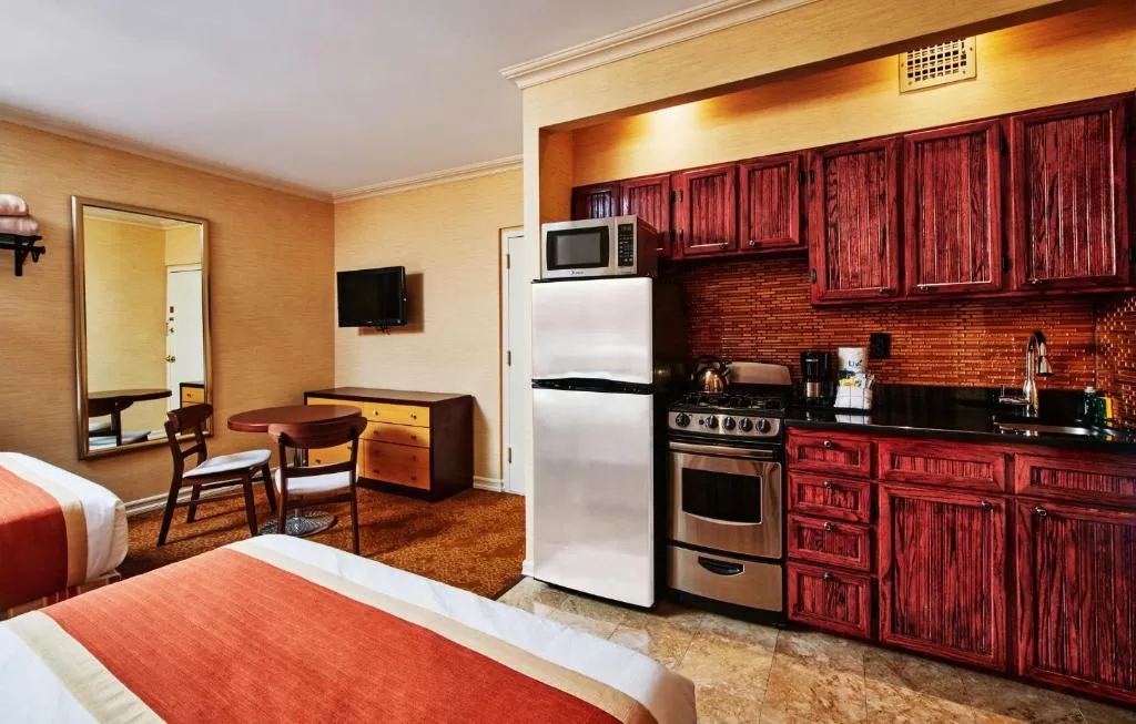 - Kitchenette em Todos os Quartos: Cada apartamento possui uma pequena cozinha equipada com geladeira, micro-ondas, fogão e utensílios. Isso permite preparar o café da manhã, lanches ou até refeições completas, gerando uma economia significativa com alimentação em uma cidade cara como Nova York.