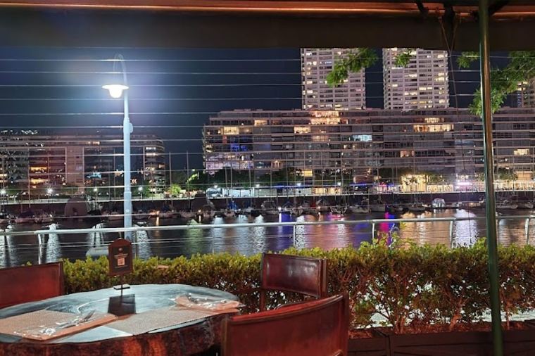 À noite, com os diques iluminados refletidos na água e o perfil arquitetônico de Puerto Madero ao fundo, a vista do Puerto Cristal tem a qualidade estética de um cartão-postal que você olha e pensa que existe só na fotografia — até que senta naquela mesa e percebe que é real.